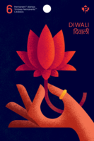 This stamp heralds the arrival of Diwali, one of the largest, most popular and most widely celebrated festivals in India – and one observed by Hindus, Sikhs, Buddhists, Jains and other communities in Canada and around the world.