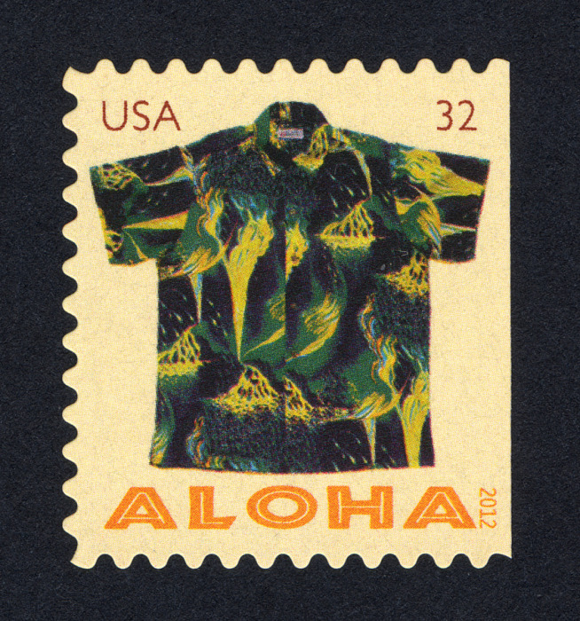 Nothing says “Hawai‘i” or conjures casual good times like the colorful Aloha shirt, which takes its name from the Hawaiian word often used as a blessing or greeting. The U.S. Postal Service celebrates the spirit of “Aloha” with five stamps, each depicting a different shirt.