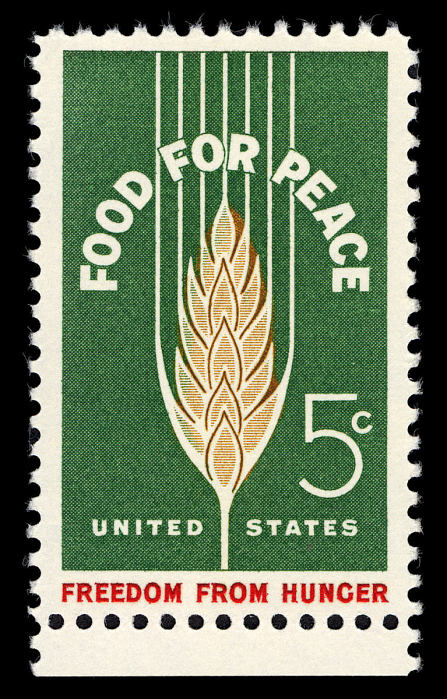 The Department issued the 5-cent Food for Peace—Freedom from Hunger commemorative postage stamp through the Washington, D.C., post office on June 4, 1963, to coincide with the opening of the World Food Congress being held June 4-18 in the Nation's Capital.