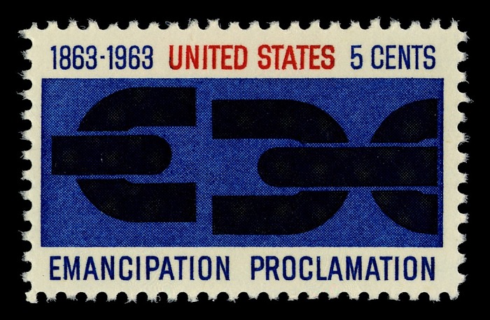 A special 5-cent stamp marking the centennial anniversary of the Emancipation Proclamation was first placed on sale at Chicago, Ill., on August 16, 1963, the opening day of the Century of Negro Progress Exposition in that city.