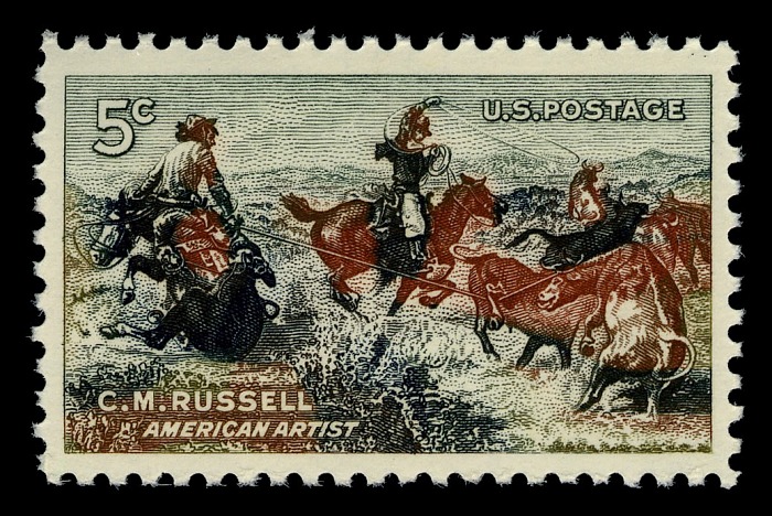 The Department issued a special stamp honoring Frontier Artist Charles M. Russell and featuring his painting entitled "Jerked Down" through the Great Falls, Mont., post office on March 19, 1964.