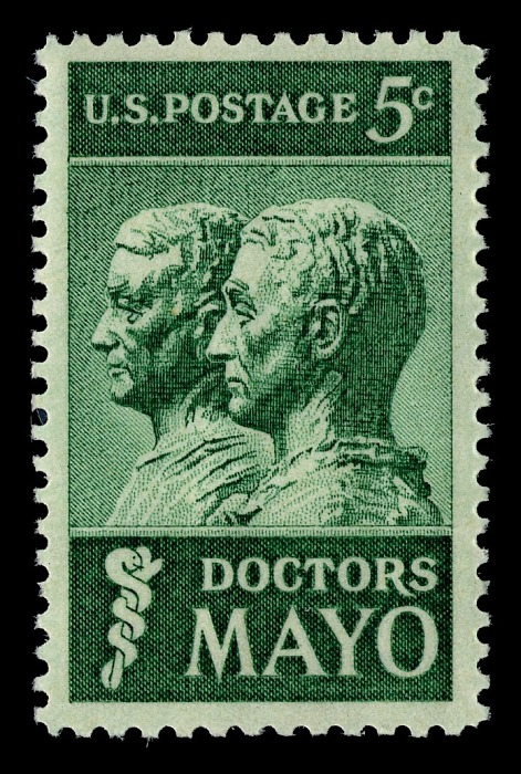 The 5-cent stamp honoring the Mayo Brothers was first placed on sale through the Rochester, Minn., post office, on September 11, 1964.