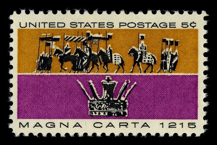 The Department issued the 5‑cent stamp marking the 750th anniversary of the Magna Carta through the Jamestown, Va., post office on June 15, 1965.
