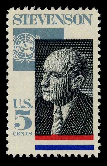 The Department issued the 5-cent Adlai Stevenson memorial stamp through the Bloomington, Ill., post office on October 23, 1965.