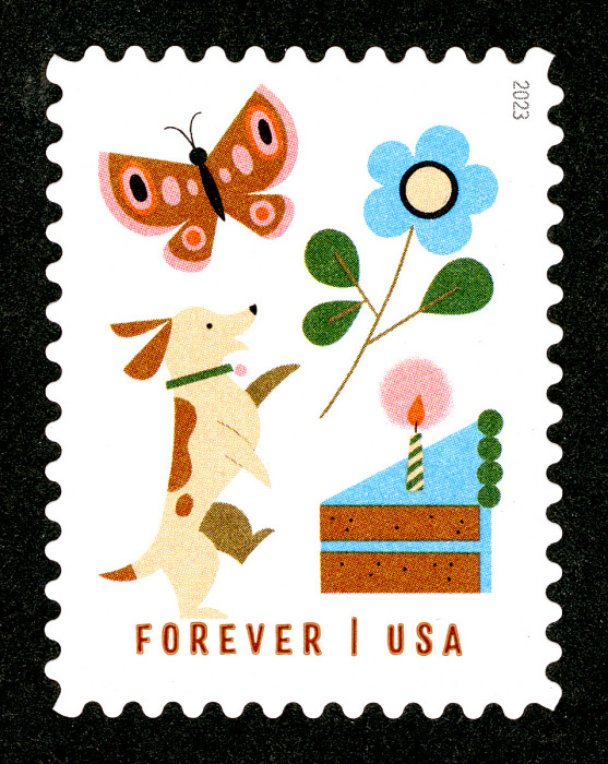 Butterfly - Flower - Dog - Slice of Birthday Cake